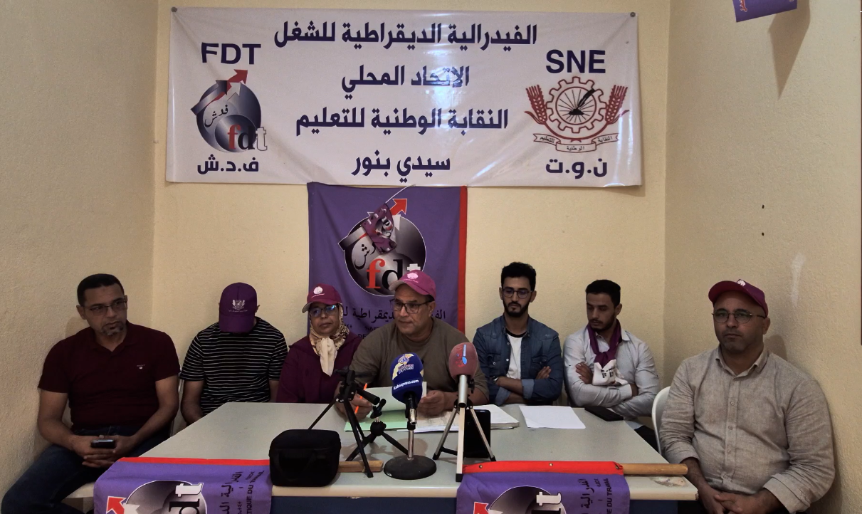 النقابة الوطنية للتعليم ( ف د ش ) بسيدي بنور تعلن في ندوة صحفية عن وقفة احتجاجية و مسيرة نحو عمالة الاقليم