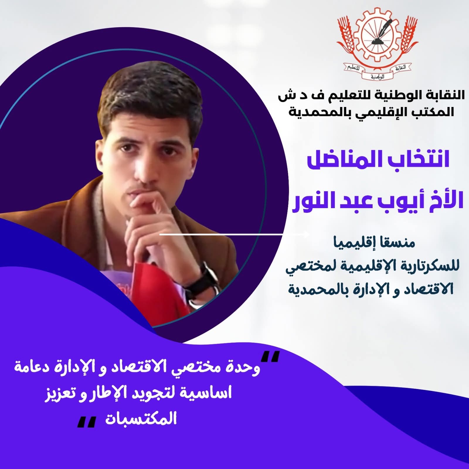 و بعد نقاش جاد و مسؤول و بعد التذكير بأهمية المكتب الإقليمي للنقابة الوطنية للتعليم ف د ش بالمحمدية و ما يبدله من جهد في سبيل ضمان مكتسبات هذه الفئة داخل الإقليم و صون حقوقها و كرامتها و التصدي لمختلف التعسفات التي تعترضها، تمت هيكلة السكرتارية الإقليمية على النحو التالي: